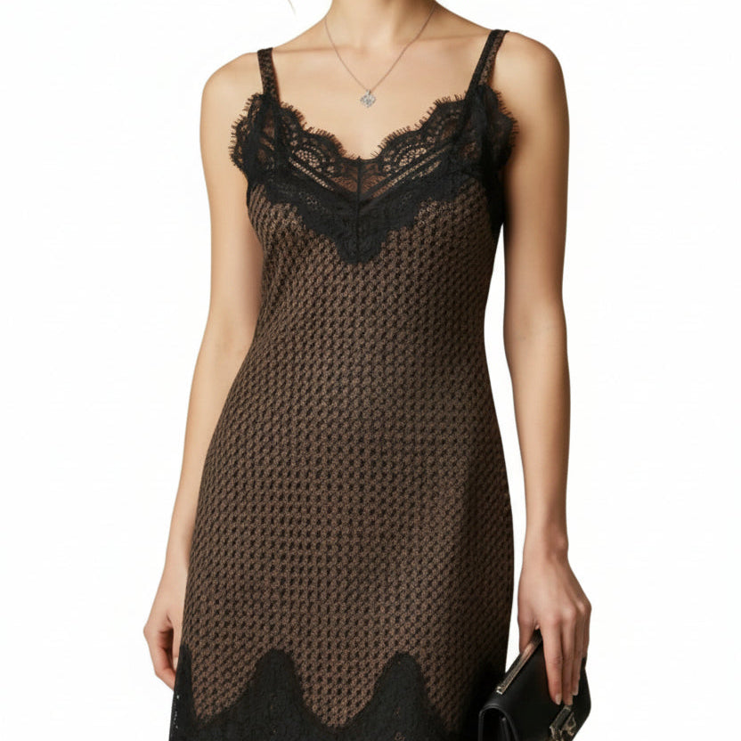 Ένα κομψό και θηλυκό φόρεμα slip, με φίνα δαντέλα και εφαρμοστή γραμμή που αναδεικνύει τη σιλουέτα. Ιδανικό για βραδινές εμφανίσεις και ιδιαίτερες περιστάσεις.